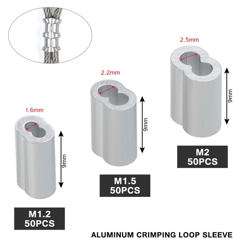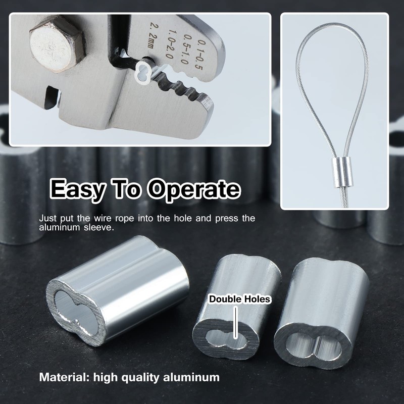 - 【Included Pack】High precision crimping tool for wire ropes with 3 sizes, 600 pieces aluminium double sleeve crimp sleeve set.