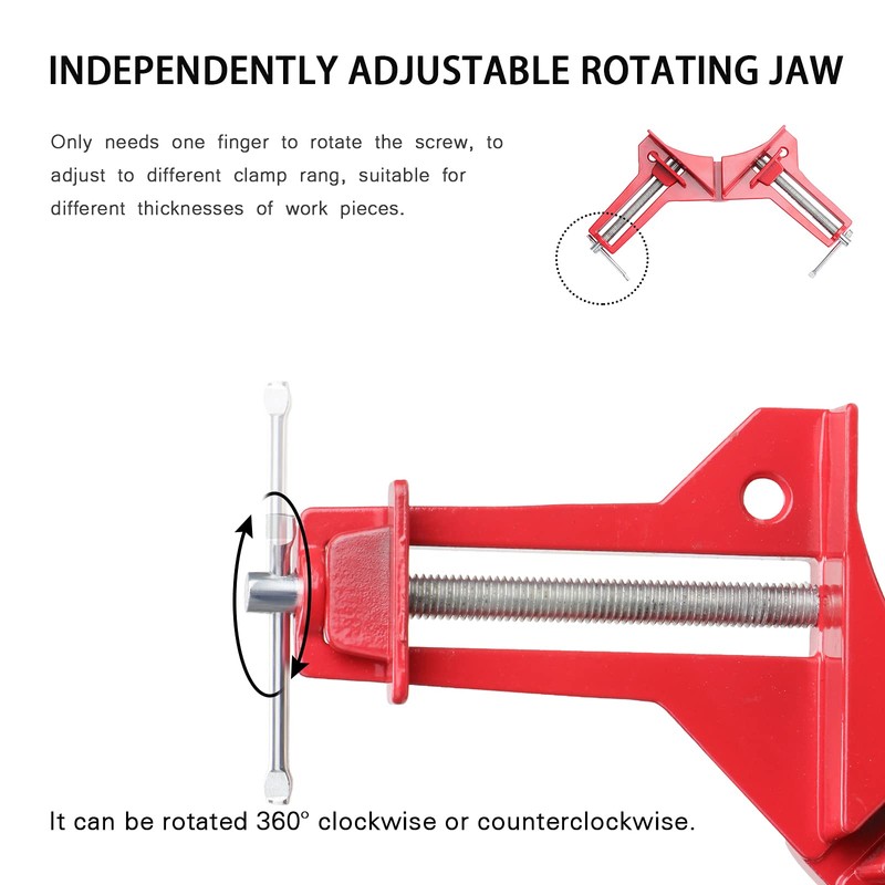 ③ Each angle clamp with two steel screws and independently adjustable swivel jaws, you only need one finger to turn the screws, easy to use.