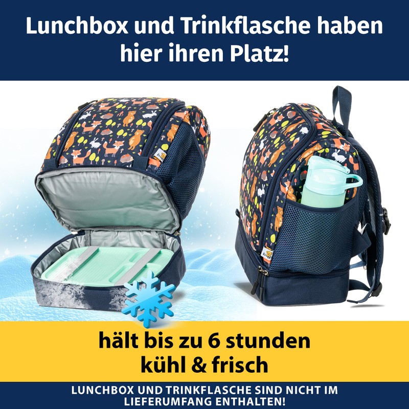 - Lunch box compartment with insulation: this backpack is versatile and is also perfect as a nursery backpack, as it has plenty of space and a separate compartment with elastic bands for a lunch box. Ideal for on the go to take snacks and drinks with you for school or kindergarten.