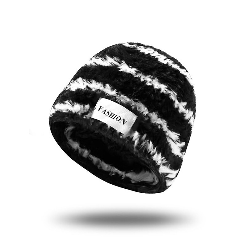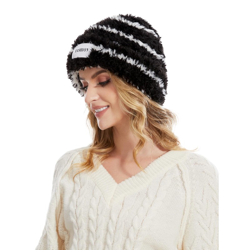 Knuffnee Women's Winter Slouchy Beanie Hat Warm Plush Winter Hat Soft Fluffy Knitted Hat, Black and white stripes