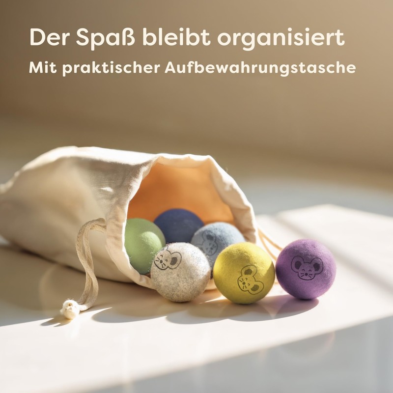 Knupis Felt Balls for Cats - 6 Balls Wool - Sustainable Cat Toy with Bright Colours - Includes Storage Bag
