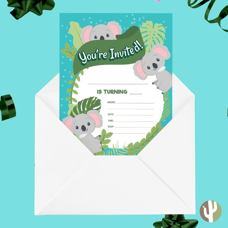 Koala Design 2 Happy Birthday Invitations Invite Cards (25 Count) With Envelopes Boys Girls Kids Party (25ct)
