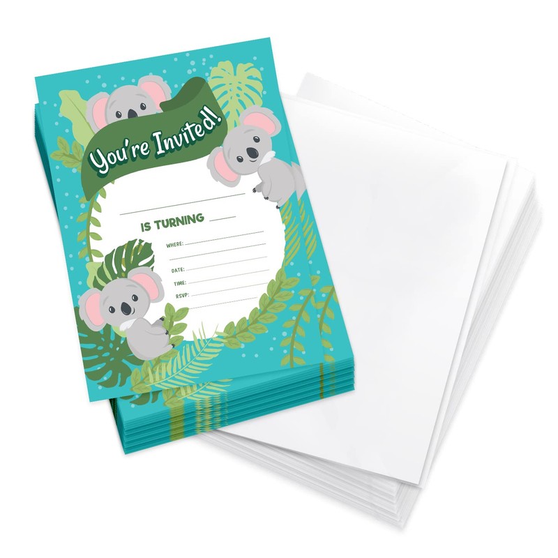 Koala Design 2 Happy Birthday Invitations Invite Cards (25 Count) With Envelopes Boys Girls Kids Party (25ct)