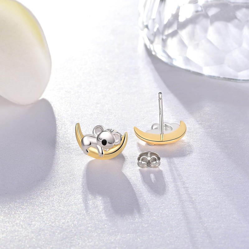 - Material: Our koala and moon stud earrings is made of real 925 sterling silver ,engraved with “S925”,lead free, nickel free, won't change color