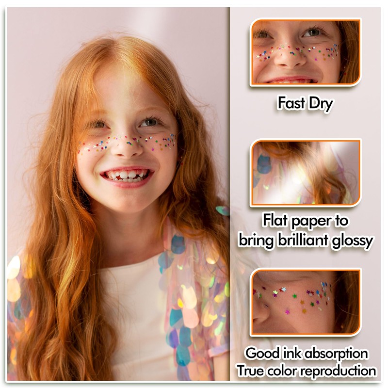Double-Sided High Glossy Finish, both side is printable, 8.5x11 inch Sheet Size, 50 Sheets/pack, 260gsm Heavyweight paper