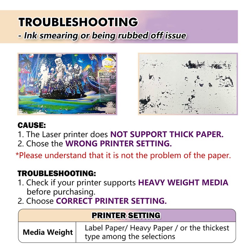 - NOTE - Make sure your Laser printer can handle thick label paper before purchasing. Otherwise, you may have the toner smudging or jamming issues.
