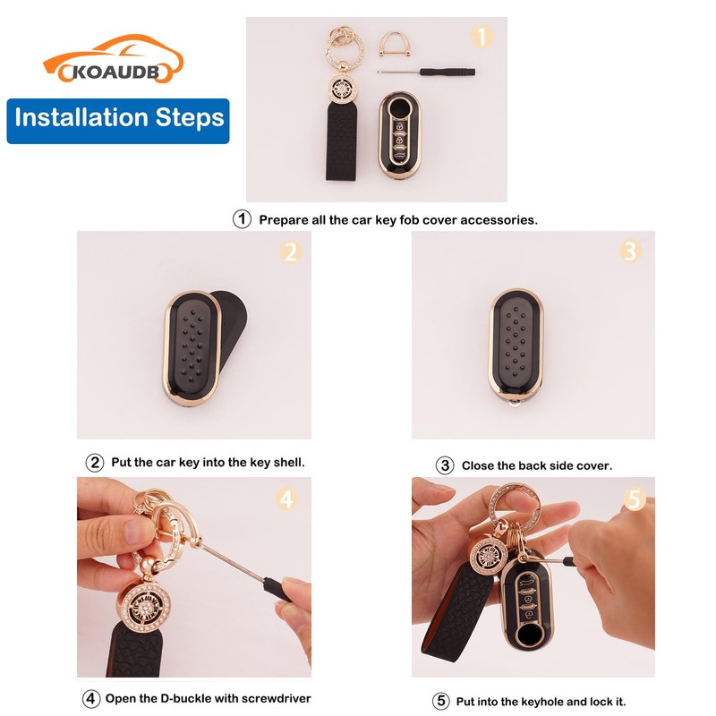 - Package: This car key ring cover kits comes with a TPU key ring case (does not include the key chain), 1 anti-lost buckle, 1 bling key ring, 2 small key rings, 1 woven lanyard and a screwdriver. It could make your car key look luxury and cool, which is a good gift for your friends or families on Christmas, Thanksgiving, birthday.