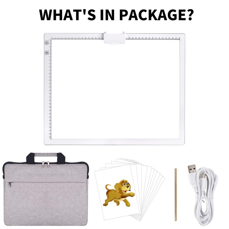 - 【 Carry Bag, SELF-SUPPORTING STAND and Top Magnetic Clip 】 The carrying bag is padded and lined with soft anti-scratch fabric, which helps to keep the screen protected and make it more durable. It also comes with a shoulder strap to carry the bag. The A3 LED tracing pad features with a built-in stand with 6 levels of height adjustment, allows you to adjust the angle at different angle, helping you to correct the posture and reducing neck, back and eye fatigue while improving working efficiency