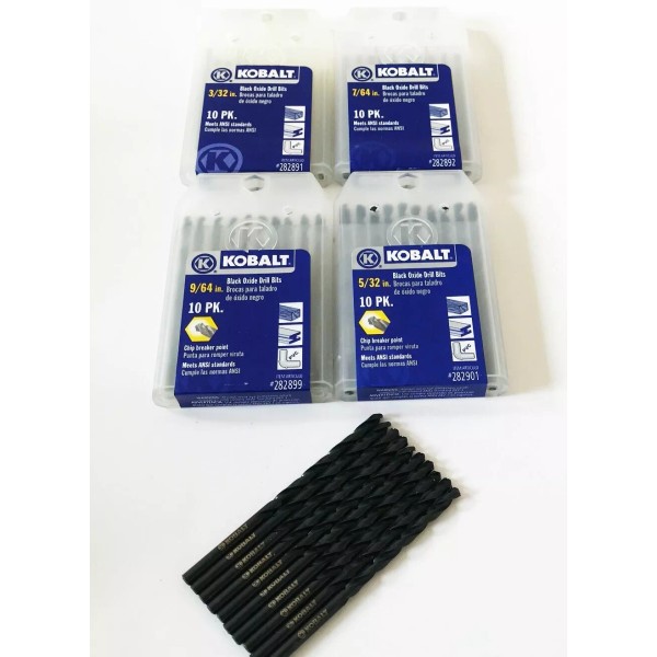 Kobalt 40pc KOBALT LASER ETCHED BLACK HSS DRILL BITS ASSORTMENT 3/32 7/64 9/64 5/32