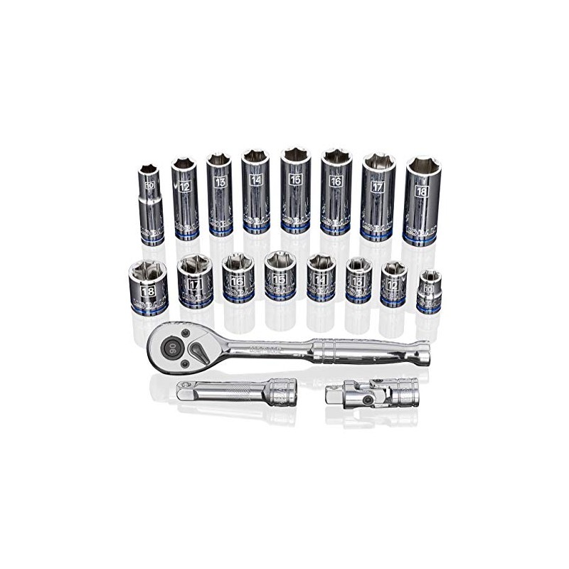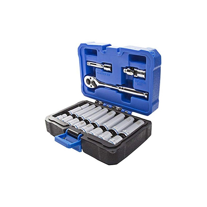 Kobalt 573347 19-Piece 3/8-Inch Drive Mechanic's Tool Set with Hard Case, Metric, Includes Quick Release Ratchet, Extension, and Shallow/Deep Sockets