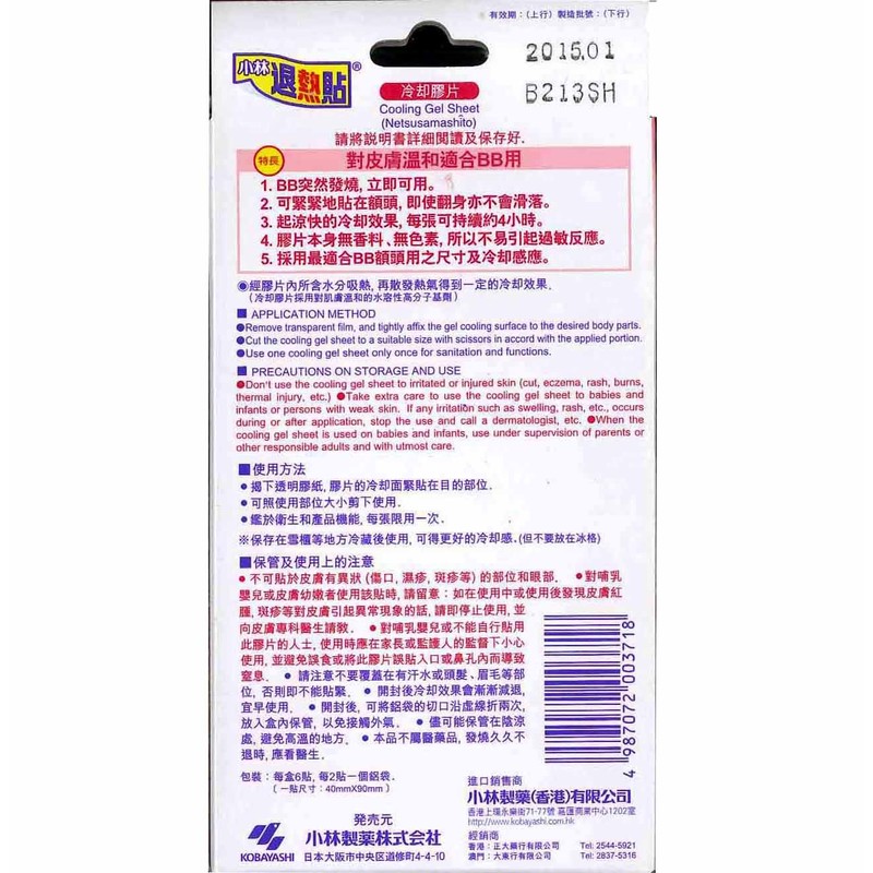 Kobayashi Cooling Gel Sheet for Baby 6 Counts 4 x 9cm Hong Kong