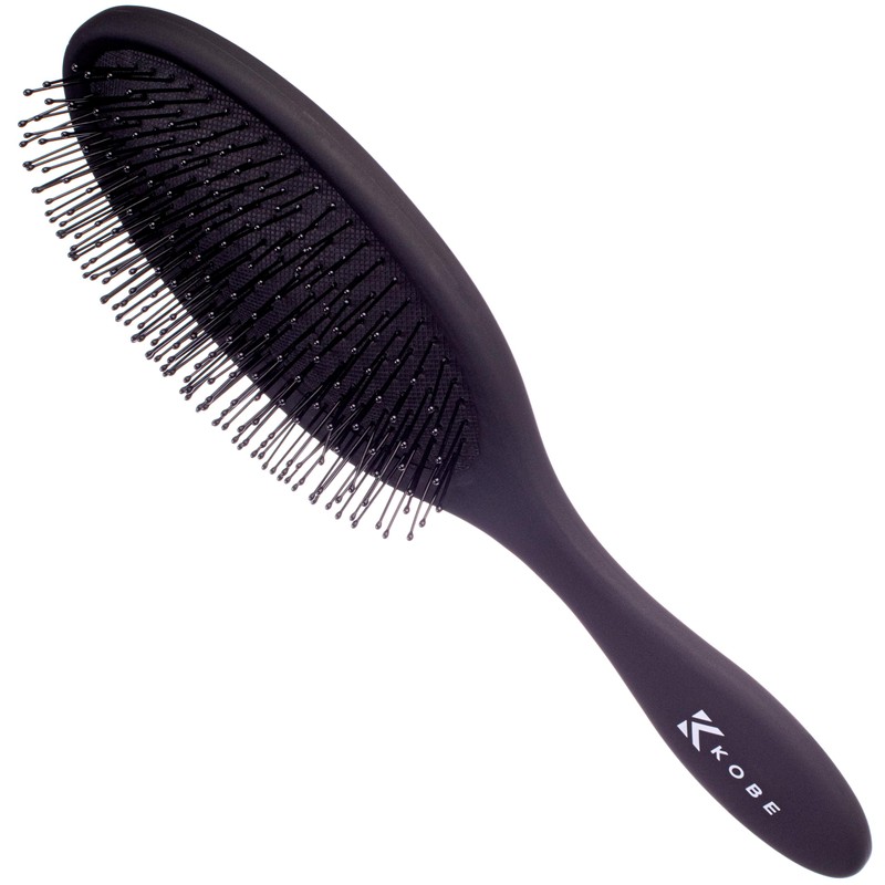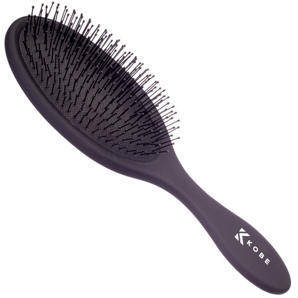 Kobe Cushion Brush, Detangling Hair Brush with Ball-Tipped Bristles, Soft Touch Handle, Black
