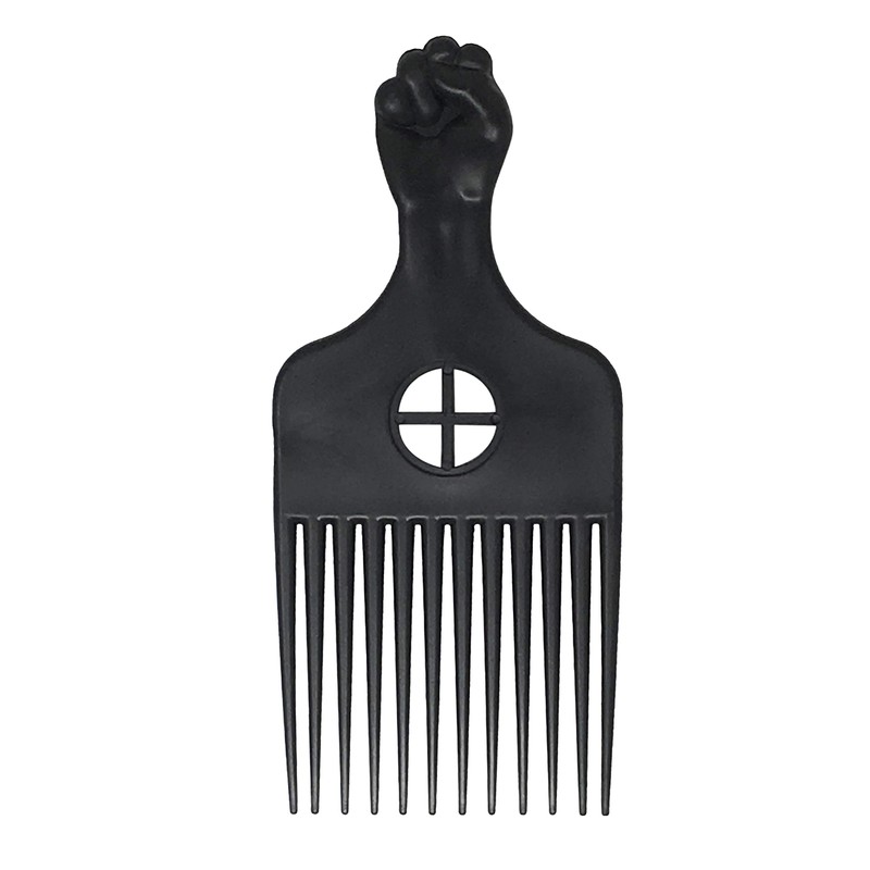 Kobe Fist Afro Comb - Black Plastic Afro Pick with 12 Teeth & Fist Design Handle