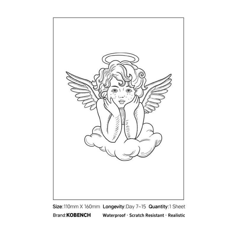 kobench Semi Permanent Tattoos,Thinking Angel Boy - K122 Design,Waterproof,Easy-to-Apply,Long Lasting 1-2 Weeks, Plant-Based,Angel Tattoos