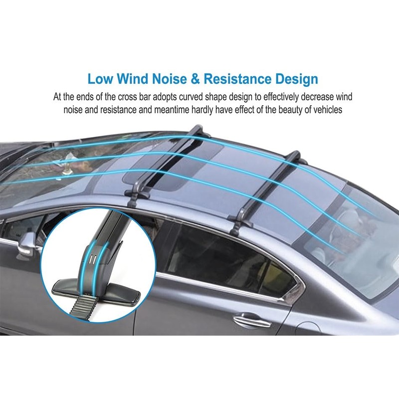 - Low Wind Noise& Aerodynamic Design: At the ends of the cross bar adopts curved shape design to effectively decrease wind noise and resistance and meantime hardly have effect of the beauty of vehicles.
