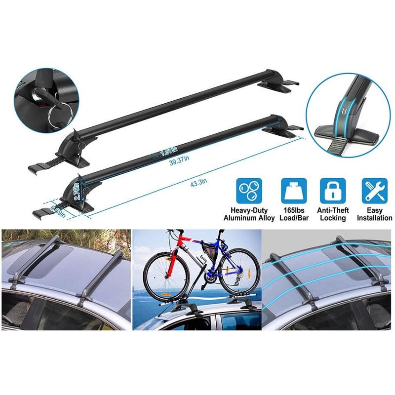- Anti-Theft Lock Design&2 Pair Keys: Each across bar comes with an anti-theft lock to ensure the security of the cross bar and coming with a durable ABS cover to protect the keyhole from bad weather. No worry about no space to put your heavy things. Make your families feel carefree during the whole trip.