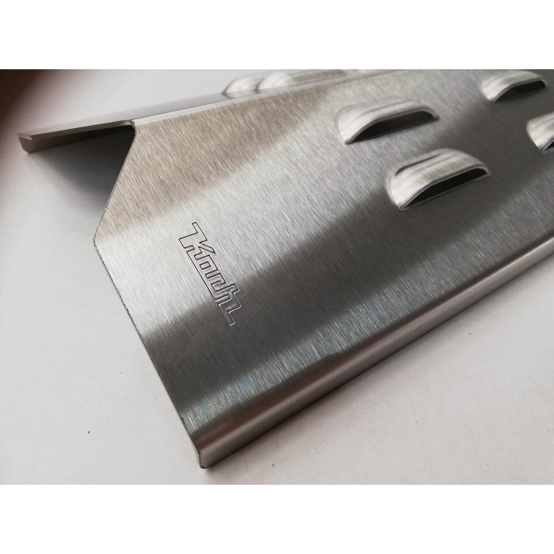 - ►If you want to replace your flame diffuser or aroma rail, then do it right now: choose high-quality products made of sturdy stainless steel with the innovative gill structure from Koch! The heat is distributed optimally and evenly and dripping grease does not get into the flame. When comparing with flame distributors without gills, you will immediately be amazed at how much faster the grill is heated and how much more evenly the heat reaches the food