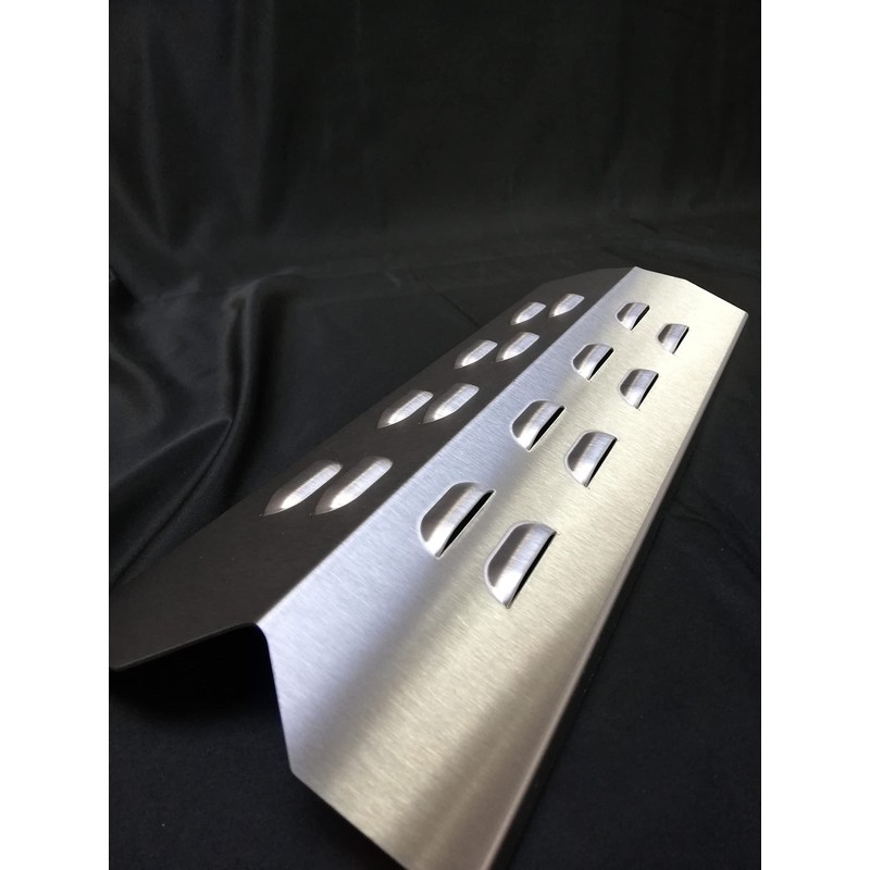 - ►The item has the dimensions 395 x 145 x 35 x 1.25 mm (L x W x H x thickness), has a V-cut-out on both sides and weighs about 600 g. Burner cover / flame plate / flame distributor / aroma rail for some Landmann gas grill models and various other gas grills (please measure exactly before ordering)