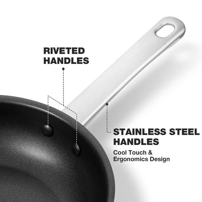 - 3-PLY CONSTRUCTION: Food grade stainless steel pan body with two layers of wear-resistant coating offers both the durability and stability, while also ensuring non-stick performance for a better cooking experience and longer service life.