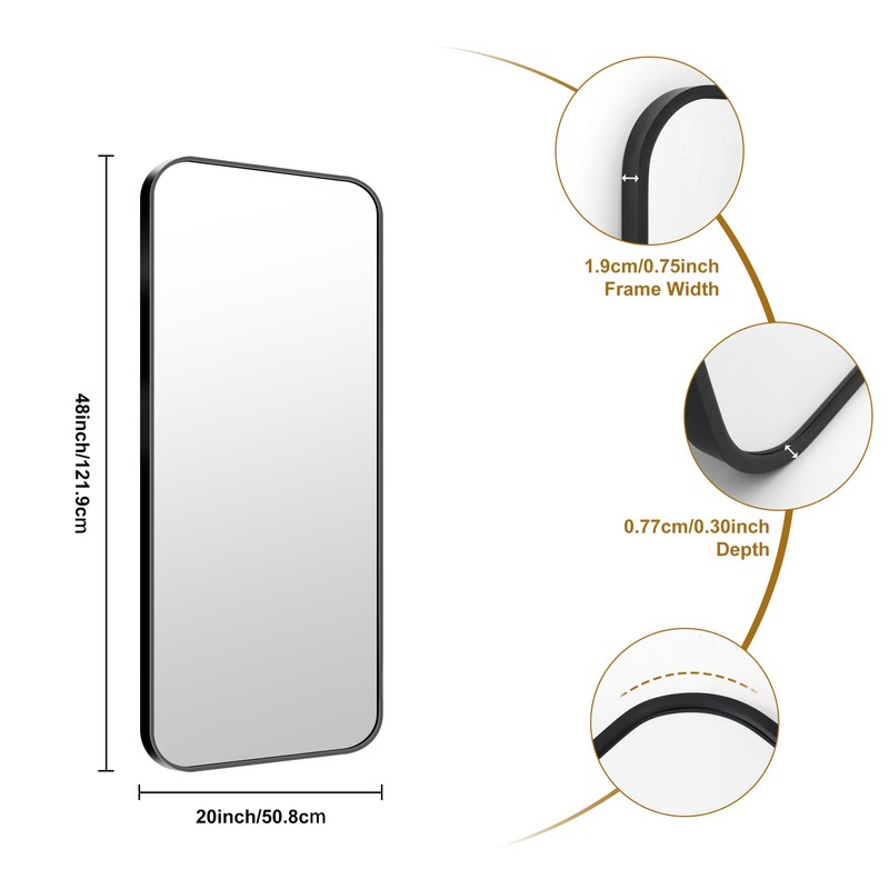 Eco-Conscious & Damage-Resistant Packaging:Packaged in a 51.77"x23.03"x1.57" box with triple-layer protection (hardened carton, corner protectors, and EPE protectors), our mirrors undergo rigorous transit testing to ensure significantly below-industry damage rates. Fully wrapped edges guarantee safe unboxing.
