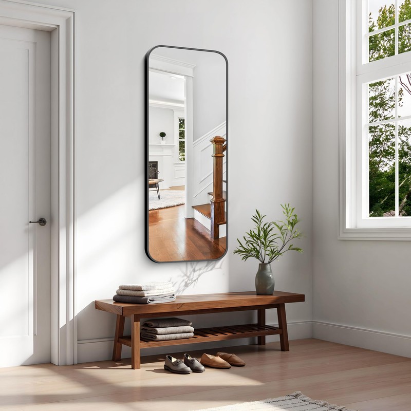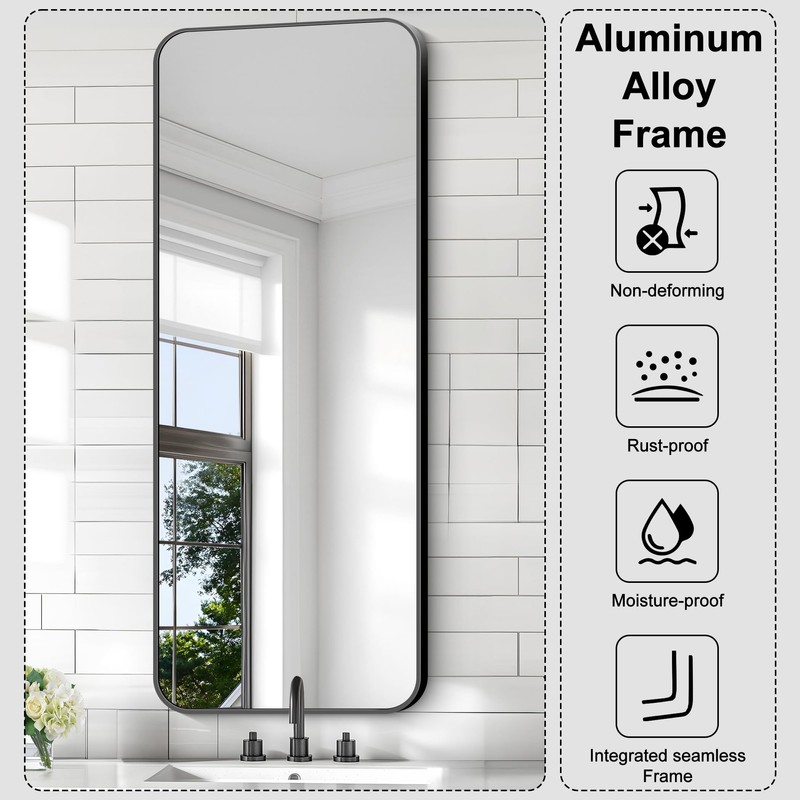 - Multi-Sizing for Every Option:KOCUUY 20"x48" black framed mirror with rounded corners complements large areas, while sizes ranging from 20"x20" to 72"x37" adapt to compact or spacious settings. Elevate any room with its understated elegance and artistic flair.