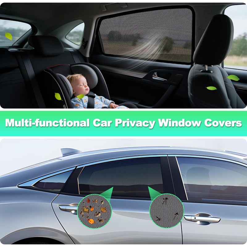 - Ultimate Privacy for Rear Passengers: Whether you're nursing, napping, or changing clothes, these baby window shades for car create a private, shaded space away from outside view. Perfect for family outings, camping, or daily commuting