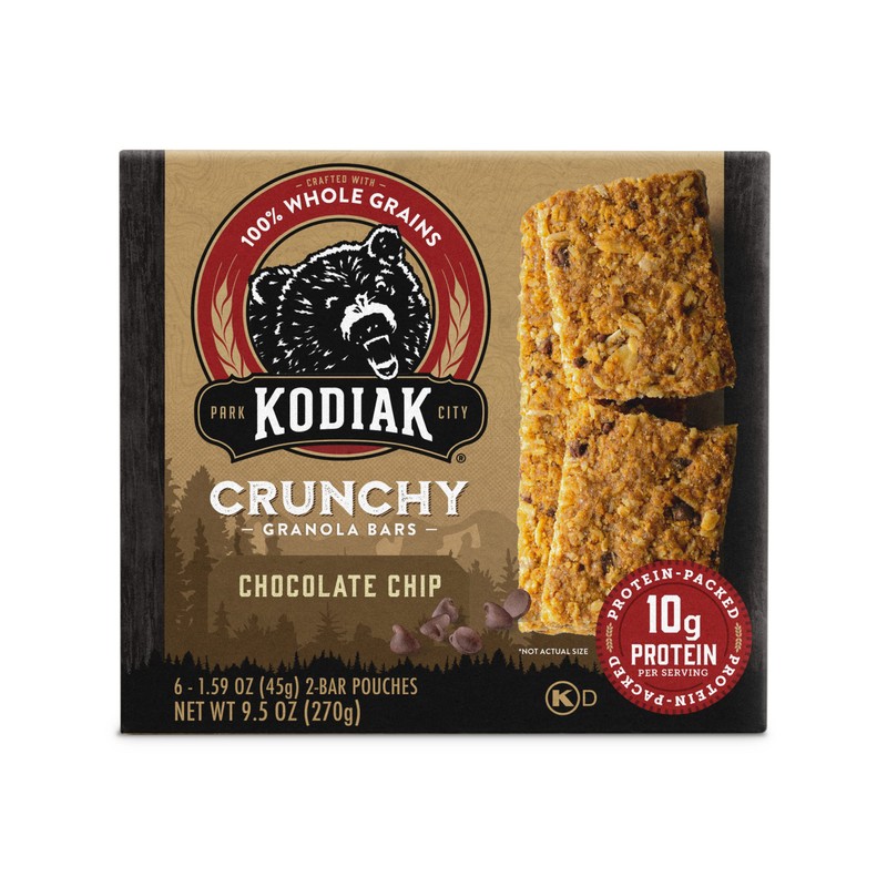 - Contains - you will receive (4) boxes of Kodiak Cakes crunchy granola bars: peanut butter (2 boxes) and chocolate chip (2 boxes), each box of granola bars bulk contains (6) pouches and (2) bars per pouch