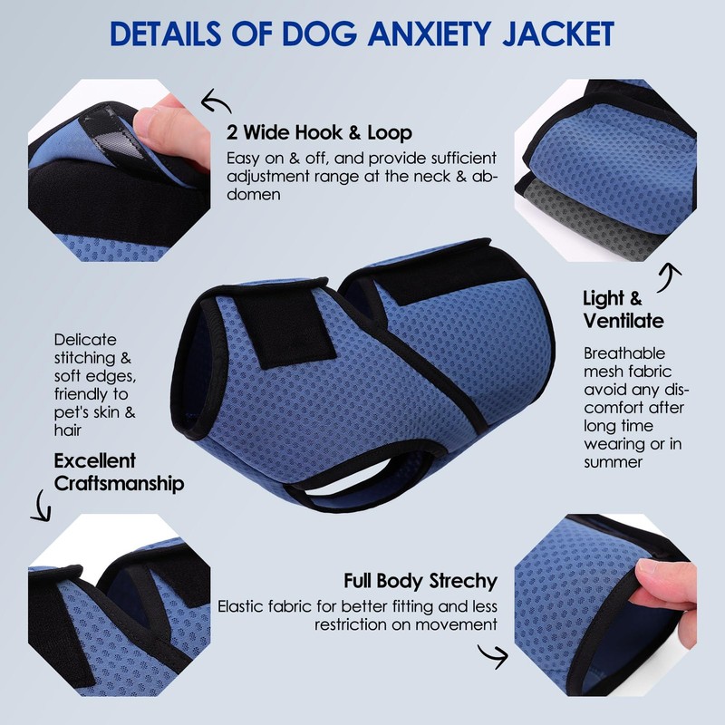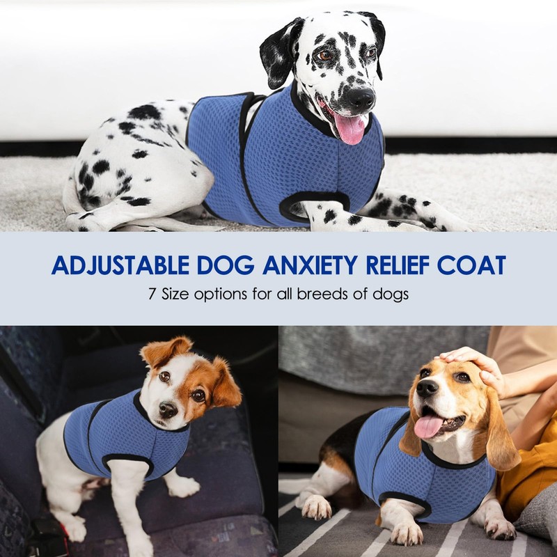 - Perfect Fit for All Breeds: Designed as a vest for dogs anxiety, this dog calming shirt comes in 7 sizes (XS-3XL) with adjustable hook and loop design to fit small to large dog storm anxiety jacket needs. The strechy mesh fabric ensures comfort for extended wear