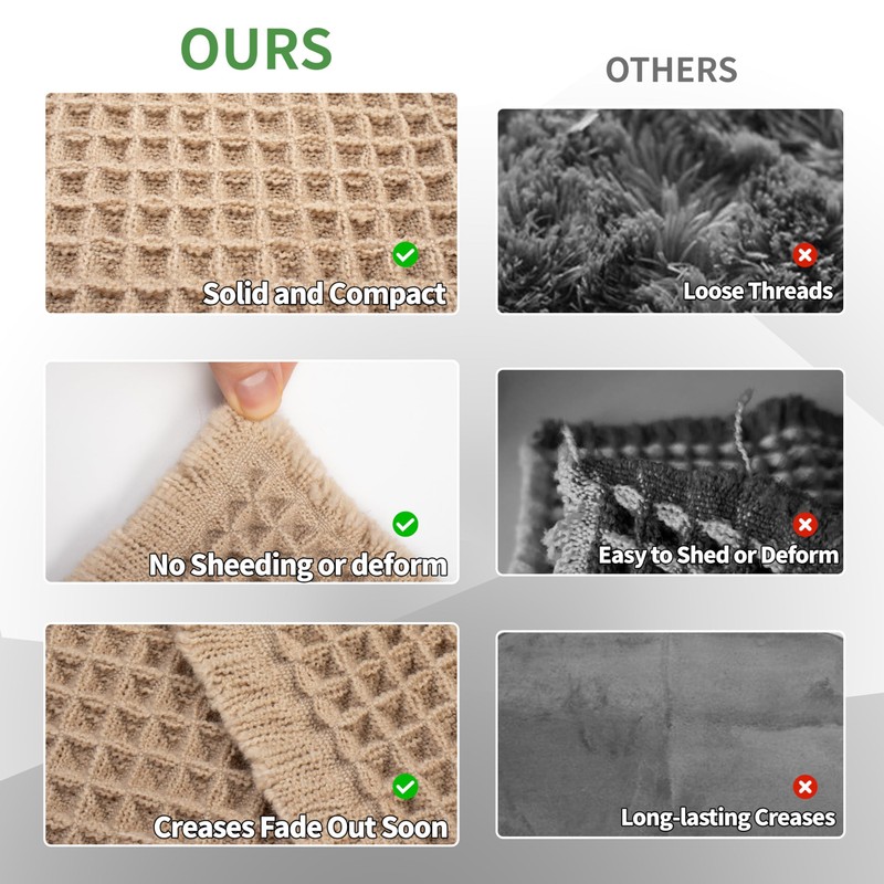 • Comfortable and Soft: Three-dimensional waffle design combined with flexible yarns make the bathroom mat softer and cozier. Bring you a comfortable underfoot feeling. Enjoy a comfort space when you finishing shower.