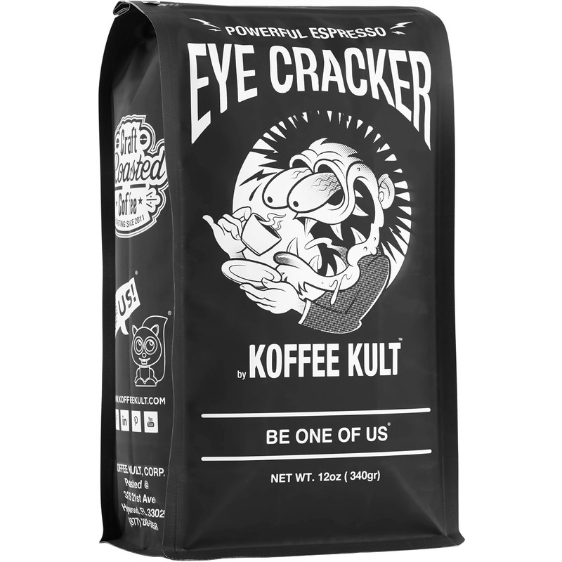 Koffee Kult Eye Cracker Espresso Coffee Beans - Bright, Bold Medium Roast with a Citrus Twist Coffee Crema - Artisan Roasted Fresh 100% Arabica Speciality Grade (Whole Bean, 12oz)