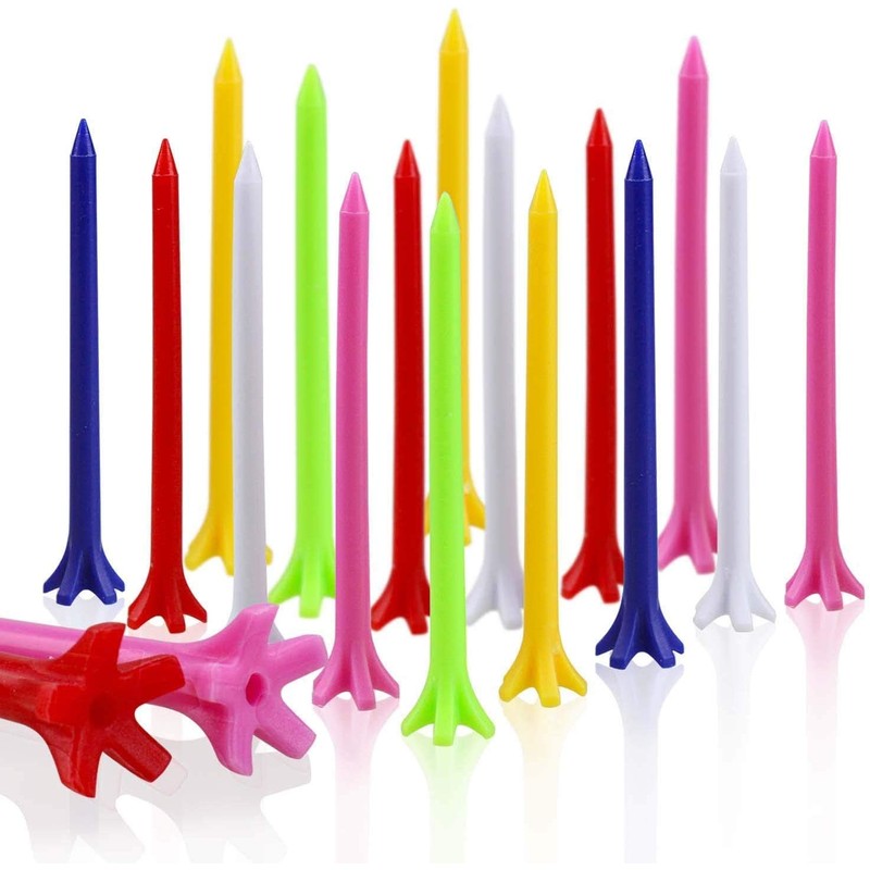 3) Very durable plastic golf tees, very easy to find on grass, the pointed bottom is solid, help you play and enjoy your golf game.