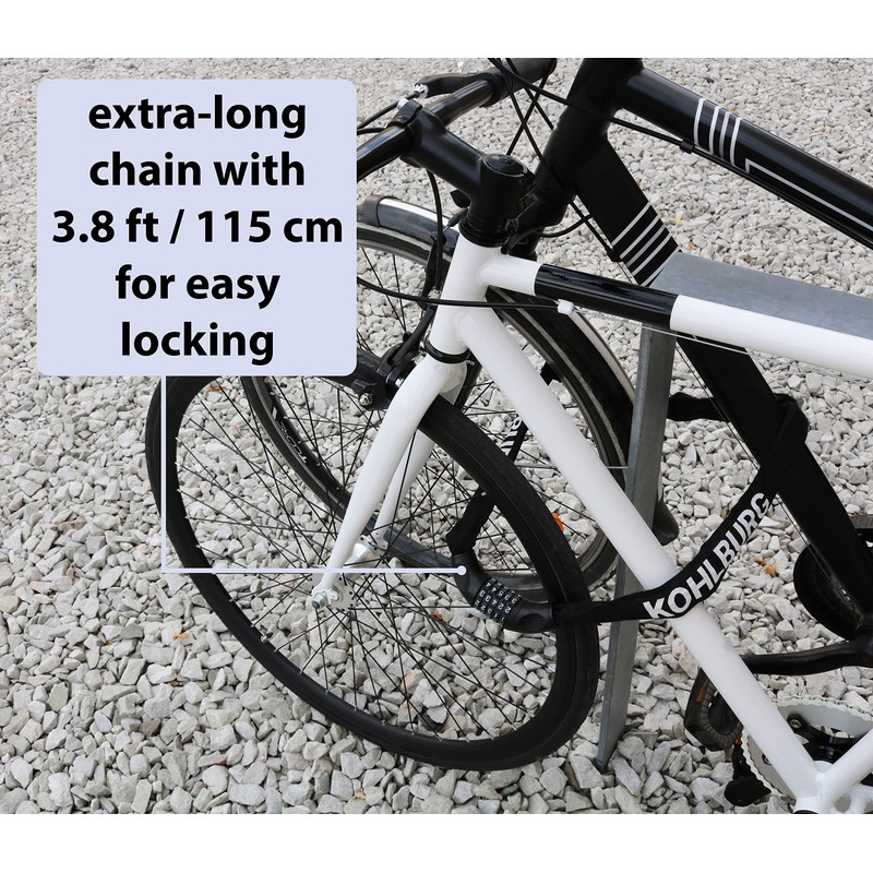 KOHLBURG Extra Long Bicycle Combination Lock - 3.8 ft Chain & 0.24” Strong Number Combination Bike Lock - Secure Chain Lock Almost 4 ft - Security 5-Digit Bike Lock Combo for Bicycle & e-Bike