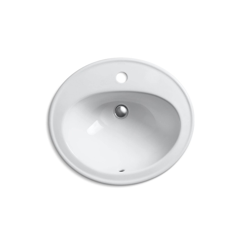 KOHLER 2196-1-0 Penninton Oval self-Rimming Bathroom Sink with Single Faucet Holes, 20-1/4" W x 17-1/2" L, White