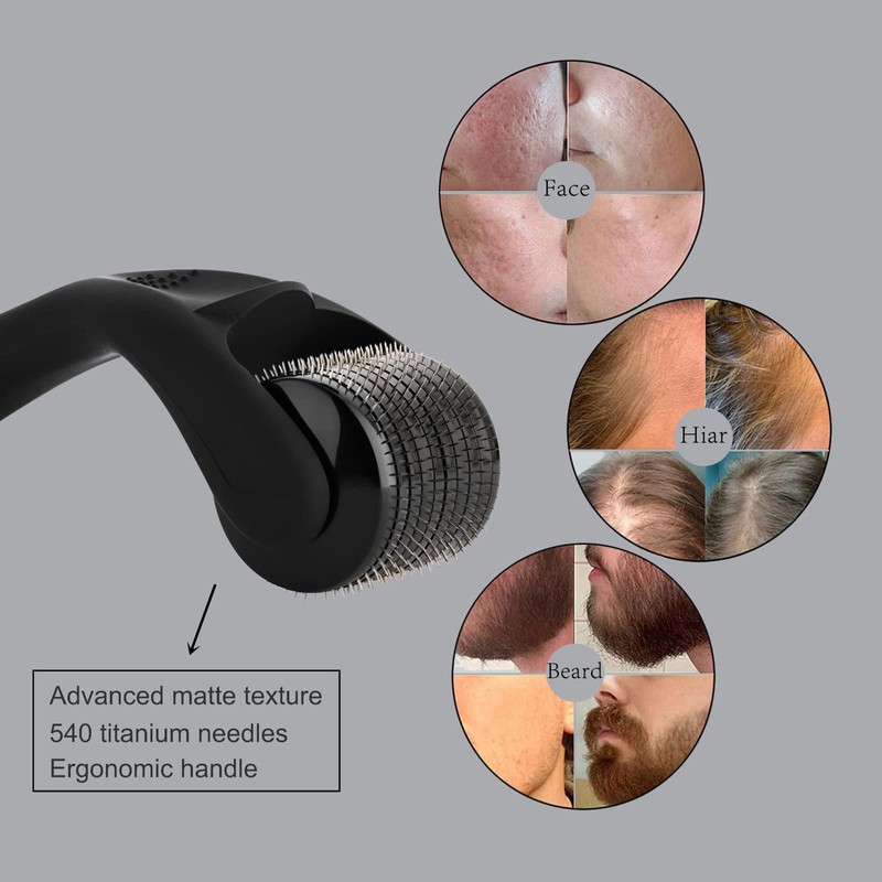 KOI BEAUTY Derma Roller 1mm for Hair Growth, Microneedling Roller for Face Body Scalp, Dermaroller for Men Women, Beard Roller for Beard Growth, Micro Needling Roller 540 Titanium Needle Home Use