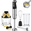 - [Multifunctional Handheld Blender] KOIOS immersion handheld blender kit includes stick blender shaft, stainless steel egg whisk, milk frother, 500ml chopper bowl, 600ml mixing beaker, perfect for making baby food, smoothies, soups, mayonnaise, meringue, chutney, salsas, crêpe batters ect.