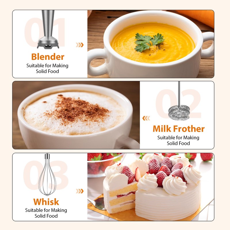 KOIOS Immersion Blender, 1000W Anti-scratch 3-in-1 Hand Blender, Upgraded 12 Speed Stainless Steel Blade Stick Blenders with Turbo Mode, Whisk and Milk Frother, Non-BPA