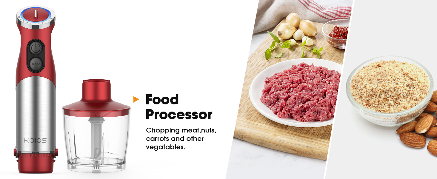 - Powerful and Fast – KOIOS hand blender electric equipped with an enhanced upgraded 1000 Watt high power copper motor,which makes blending task faster with Low noise. In contrast to common motors, copper motor promises 3X longer service life.