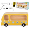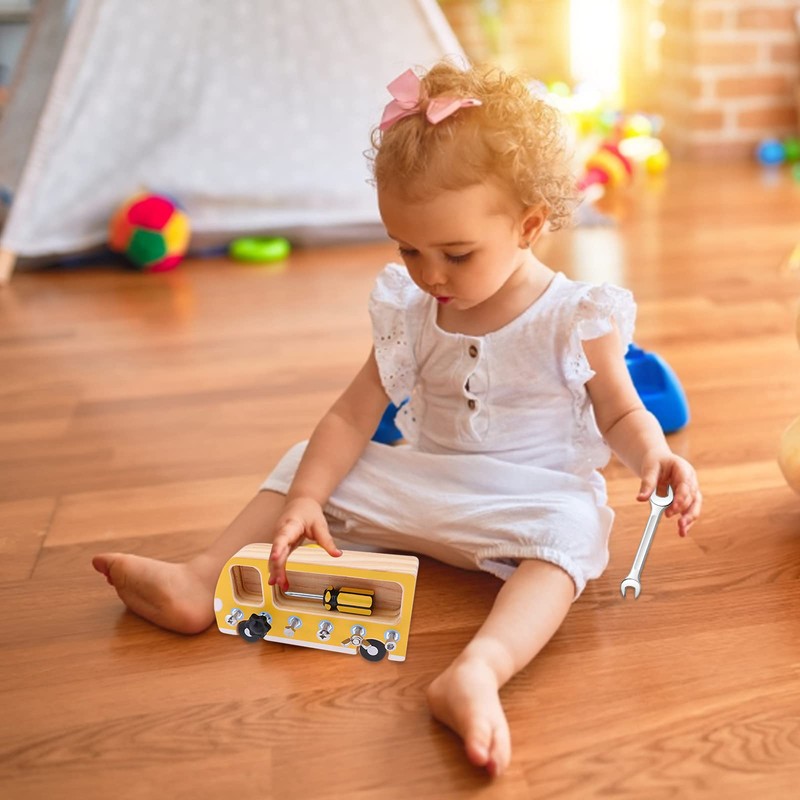 - Montessori wooden screw board: includes a Montessori wooden screw board, 6 x different types of nuts, 3 x tools for screwing. All this is on a fun bus wooden screw board that really keeps your child busy.