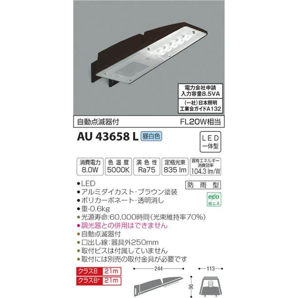 Koizumi Lighting AU43658L Security Light with Automatic Flasher, FL20W Equivalent, Daylight White, Brown Paint