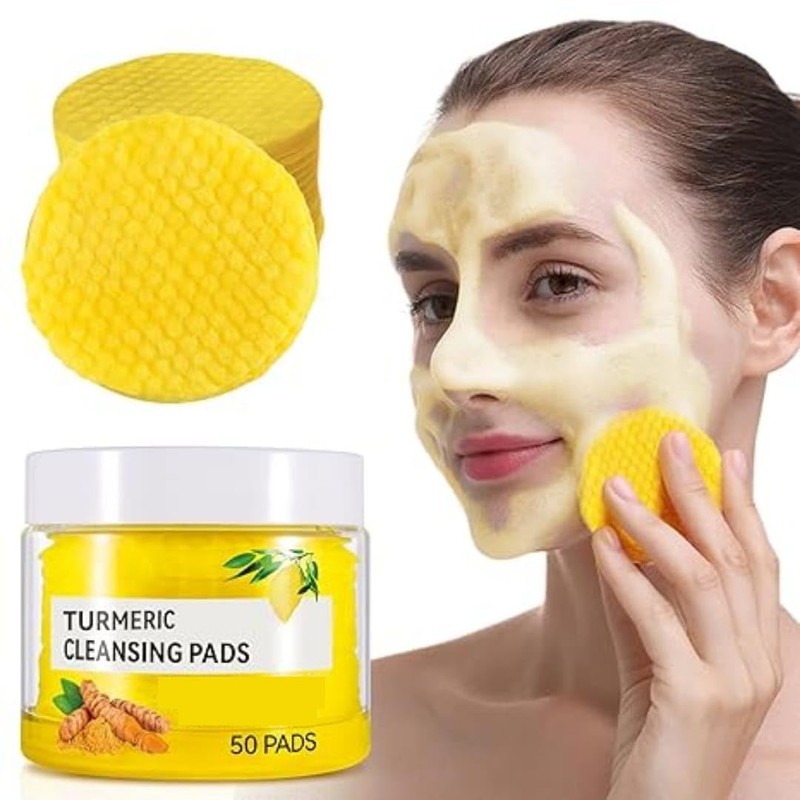 Kojic Acid and Turmeric Cleansing Pads, 50 Pcs, for Face and Body Cleansing and Exfoliation