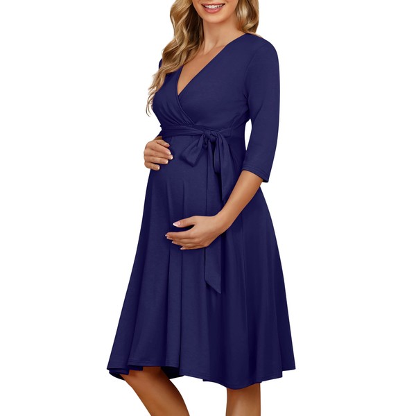 - Features: V-neck, 3/4 sleeves, delicate gathered details, maternity fashion, elegant dresses.