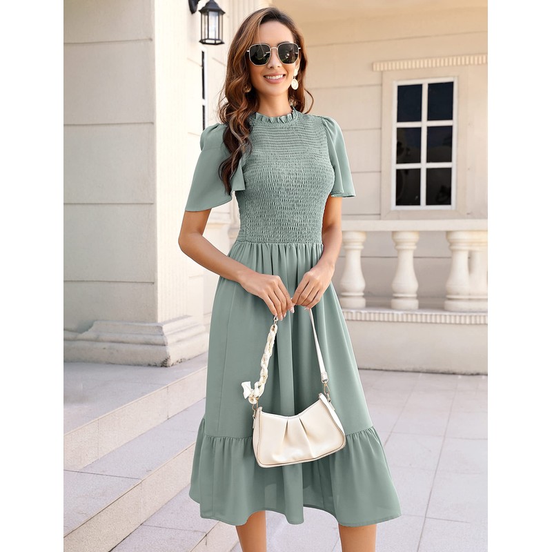 KOJOOIN Women's Dress Long Summer Dress Casual Swing Dress Short Sleeve Maxi Dress Ruffle Casual Dress (Reusable Packaging), Green