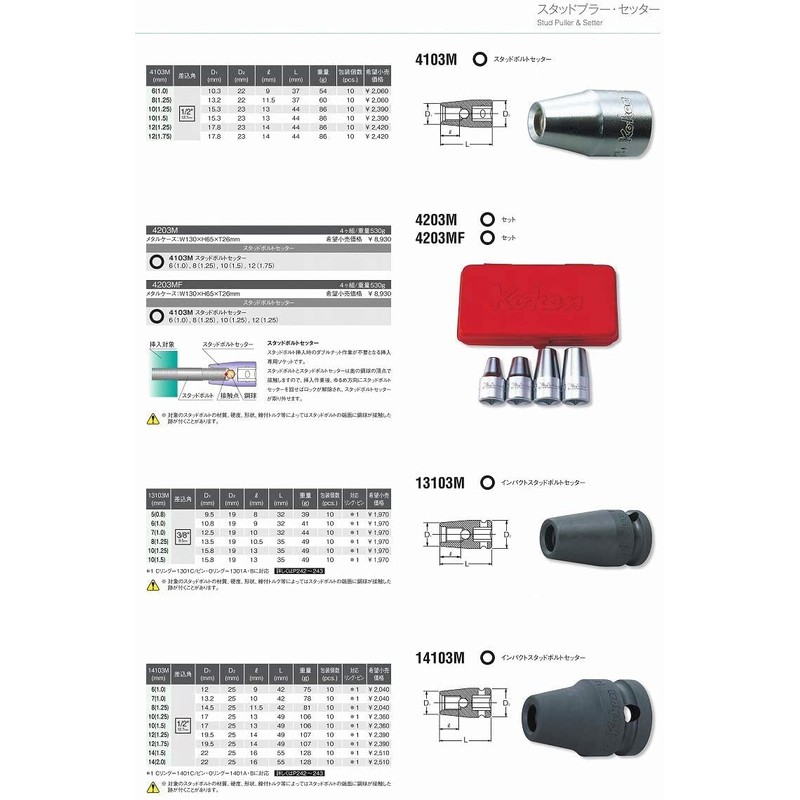 Koken 1/2 (12.7 mm) SQ. Impact Stud Bolt Setter m10xP1.5 14103M-10 (1.5)