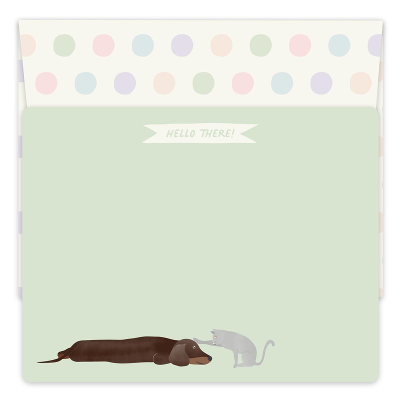 Koko Paper Co Dachshund and Cat All-purpose Note Cards | 25 Flat Cards + 25 Pastel Polka Dot Envelopes | Designed and Made in the U.S.A.