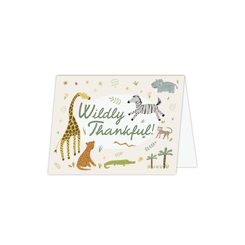 Koko Paper Co Wildly Thankful Safari Folded Thank You Cards. 15 Folded Thank You Cards + 15 Bright White Envelopes. Made in the U.S.A.