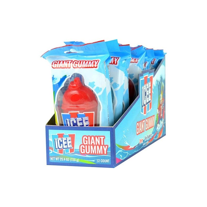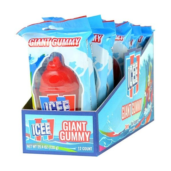 ICEE Giant Gummy has all the fruity flavor of an ICEE without the brain freeze! Enjoy the flavors of Cherry and Blue Raspberry that are based on the famous ICEE beverage!