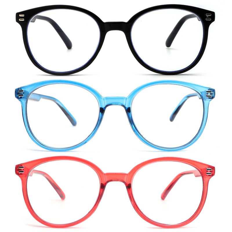 KoKoBin 3 Pack Retro Round Reading Glasses for Women,Blue Light Blocking Comfortable Readers With Spring Hinges +2.25
