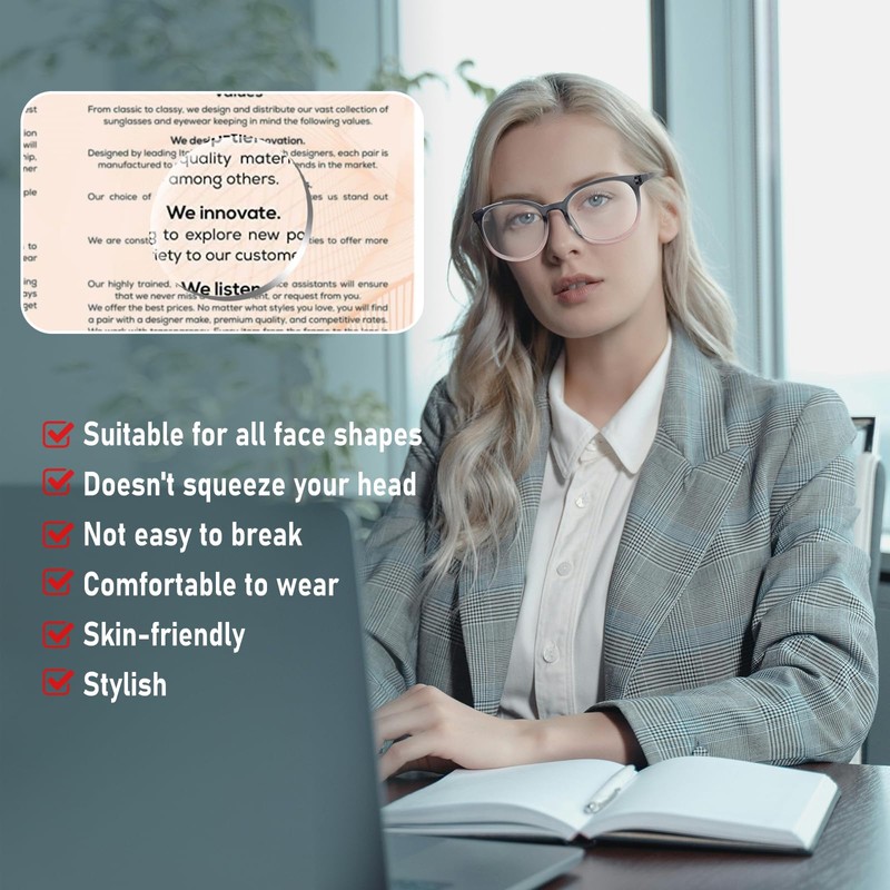 - Occasions:Fashionable word reader glasses are the ideal choice for most facial shapes (round, square, heart-shaped). They will bring you a fashionable appearance, making you a high-end taste for fashionable women in daily life or office work. At the same time, making reading, working, watching TV, enjoying digital time, and doing physical labor easier and clearer