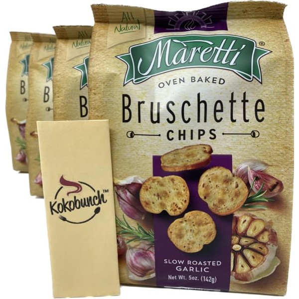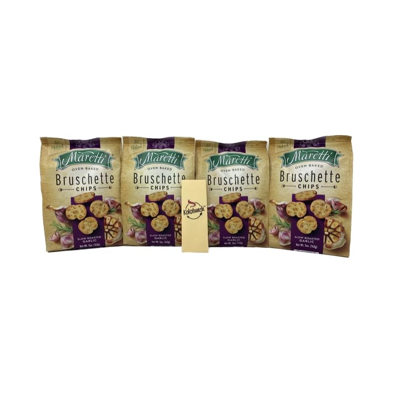 KOKOBUNCH Bundle Of All Natural Maretti Bruschette Bruschetta Vegan Cracker Bruschettini Chips 4 Pack (5oz, Roasted Garlic)