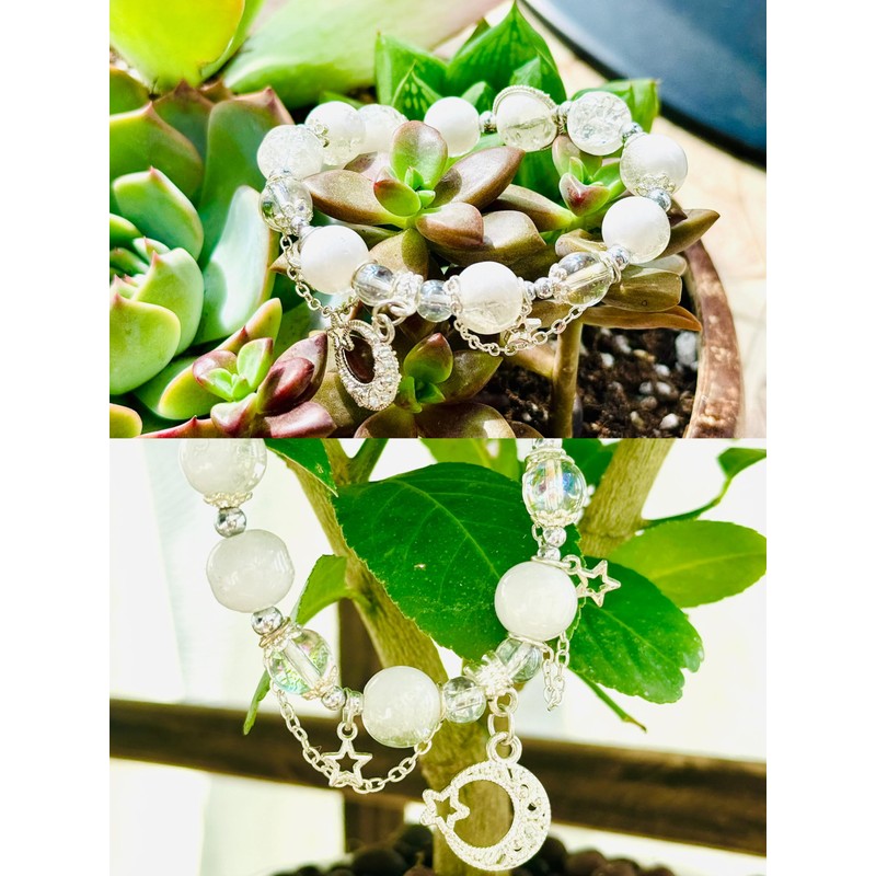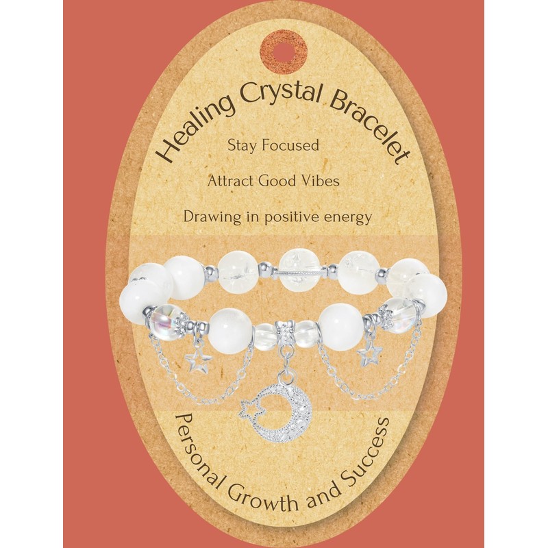 - Harness the Power of the Moon & Stars-Inspired by the mystical energies of the moon and stars, this white healing crystal bracelet guides your career path with celestial influence. It helps you navigate through challenges, bringing luck and clarity under the moonlight’s watch.